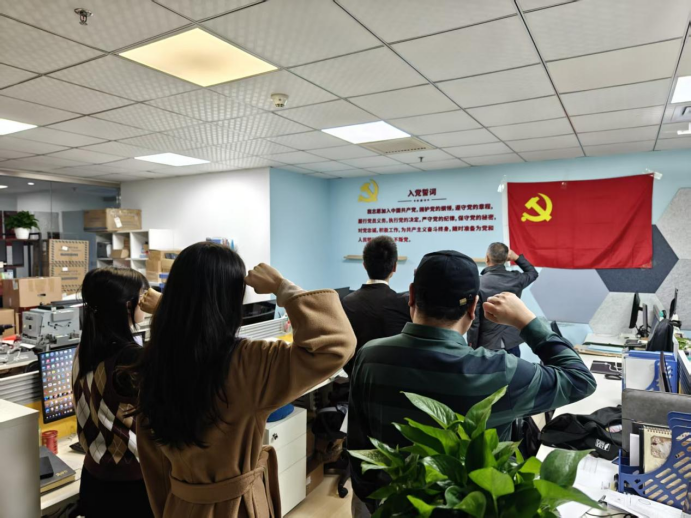 为强化党员身份意识,筑牢理想信念根基,激励全体党员铭记誓言、担当作为,2025年12月29日下午14时,中航信息产业集团股份有限公司党支部在党员活动室庄严举行预备党员入党宣誓仪式暨全体党员重温入党誓词活动。支部全体党员齐聚一堂,共同见证这一神圣时刻。